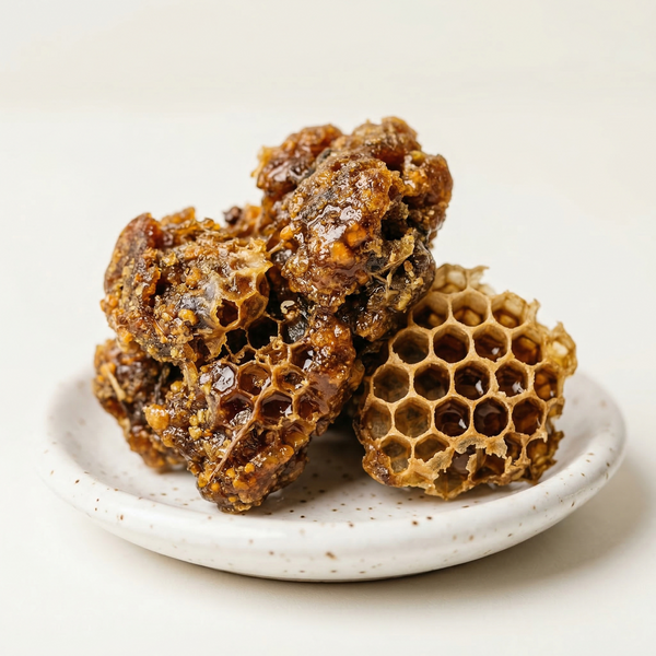 Propolis, egg yolk extract, raw beeswax, lavender. Every ingredient selected specifically for its anti-inflammatory, antibacterial and skin-barrier repairing properties. No fillers.